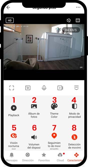 A continuación verás una breve descripción de las funcionalidades más importante de la cámara en la App.